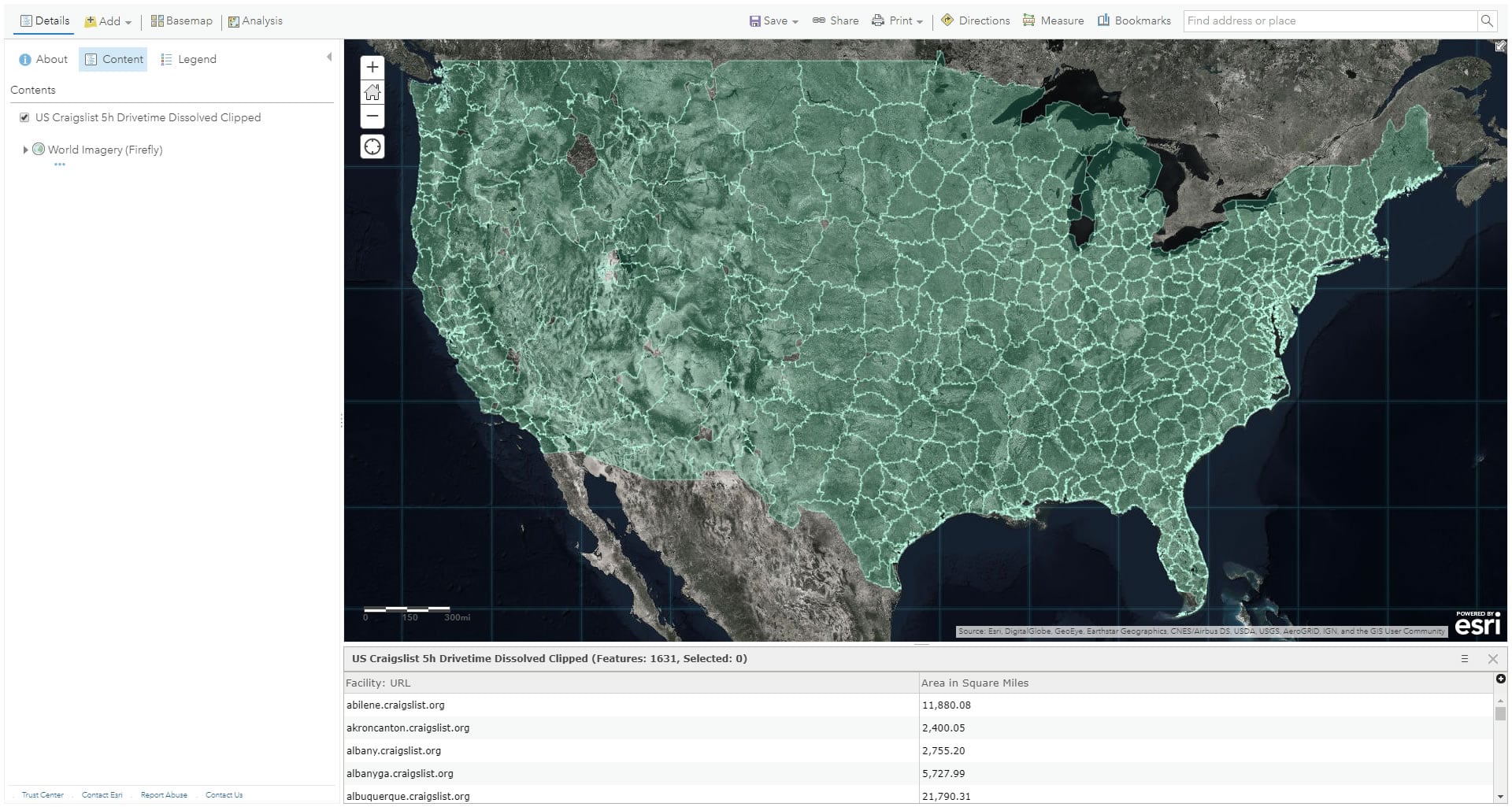 These are the Craigslist Zones in ArcGIS Online: