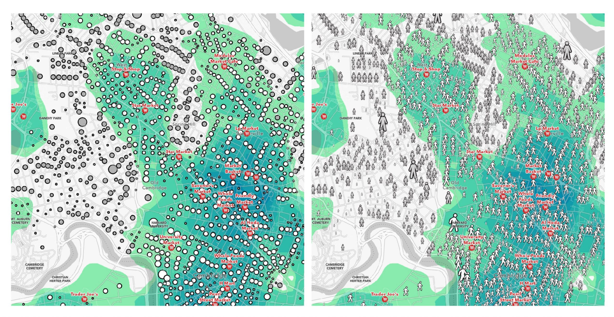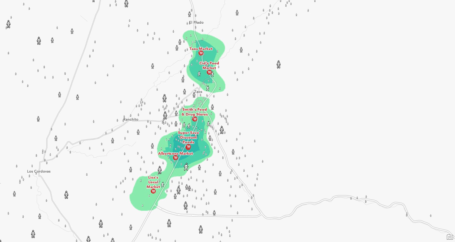 NOTE: Yes the overlapping person symbol is too much/too many, but it is doing its job just for this image by showing the lack of convenient walking access for so many people to get food.