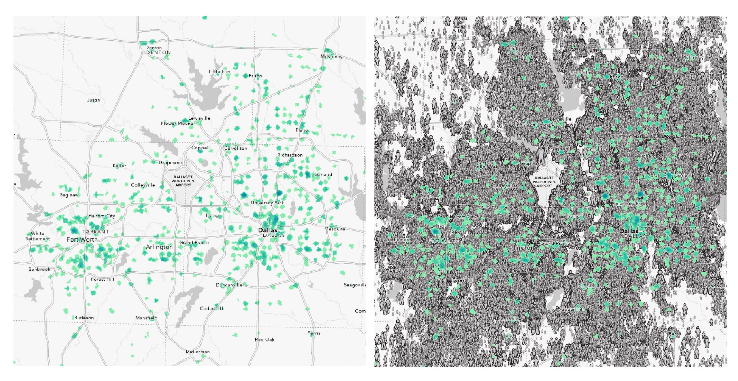 In the sprawling Dallas-Fort Worth area a vast majority of the population are unable to walk 10-minutes to a grocery store.
