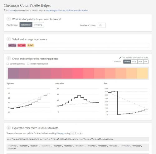 Chroma.js Color Palette Helper where you can easily build palettes by taking your known HEX values, number of classes, and if you want a sequential or diverging palette.