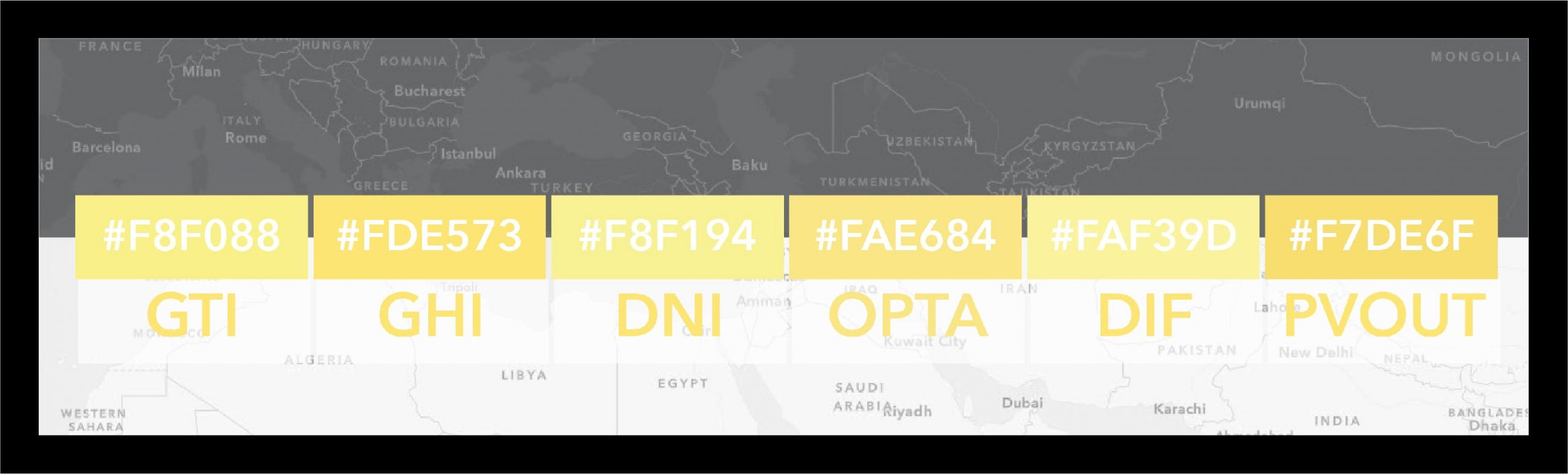 As a cartographer for Esri’s Environment Team I created the color palettes for the Global Solar Atlas in ArcGIS Living Atlas. This layer allows you to see solar potential for where you live as well as other variables to understand your situation more specifically.