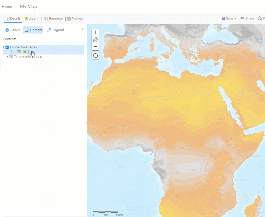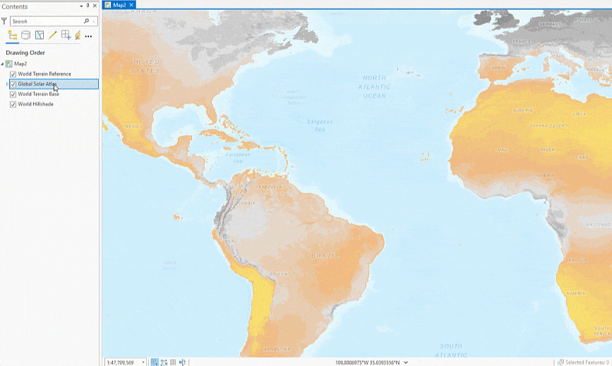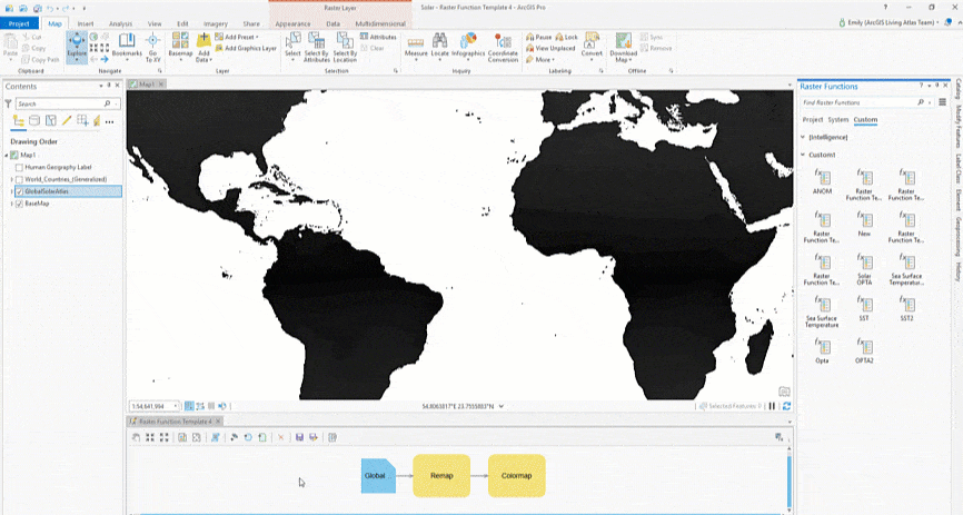 Check out the finished products in Online or Pro by adding in the Global Solar Atlas from ArcGIS Living Atlas. Show below are the processes for switching between the different renderers: