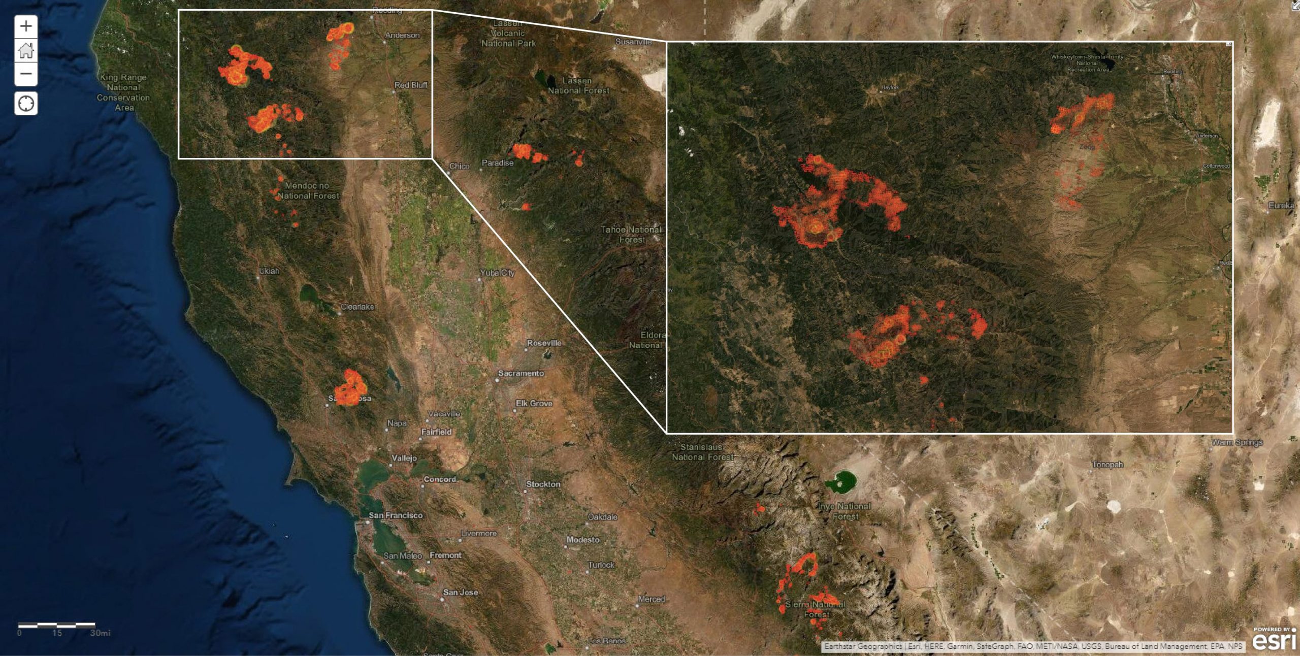 In the western United States the layer has been used to track wildfires as shown here in California.