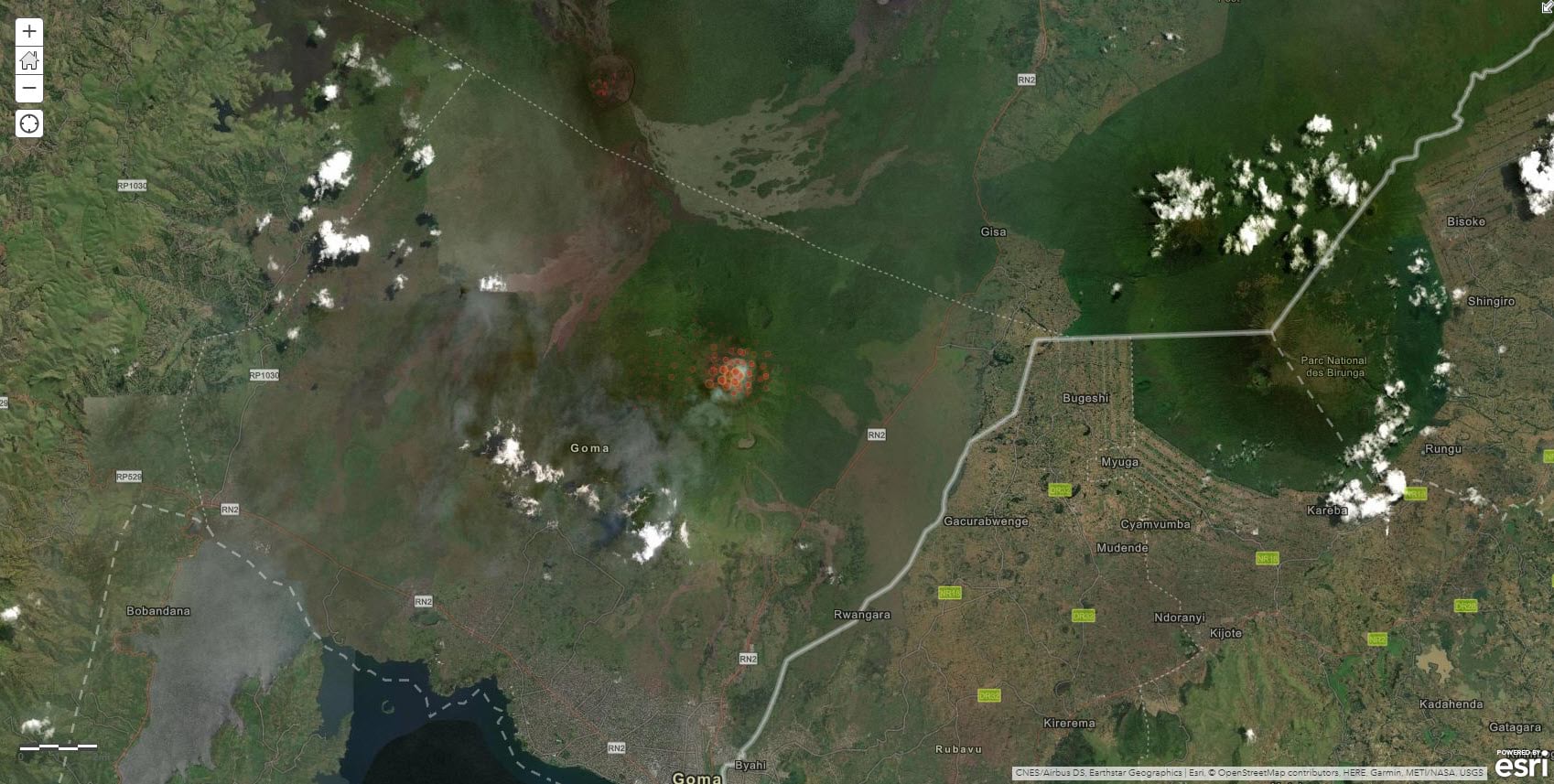 You can see the thermal signature of Mount Nyiragongo volcano in Virunga National Park, Democratic Republic of the Congo.