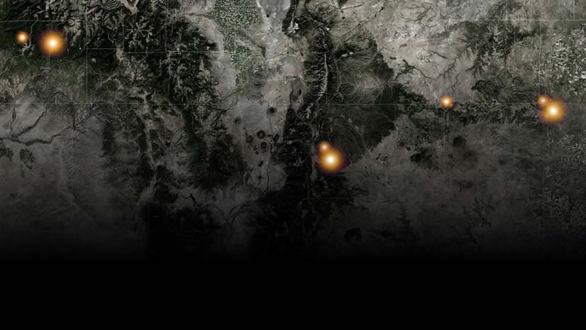 Since it is the middle of the summer, I want the current weather map to focus on hot areas, but also with a nod to wind speed/direction. The following recipe is how I came up with the map below using the Heat Index variable mapped using Counts and Amounts.
