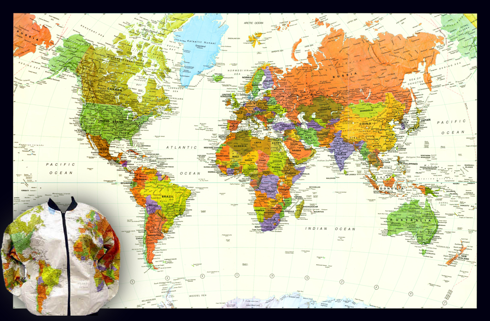 In the 1980s a mapping company called Interarts offered a series of very bright and attractive wall maps printed on Tyvek. This material is known more for its use in construction and packaging, but it is a surprisingly good print medium, and durable (Interarts also created a very popular ‘map jacket ’ in the same material). The maps were built using manual production techniques and were innovative for that time, because they succeeded in making the relief effect in the background (hillshade) take on the color of each country polygon.