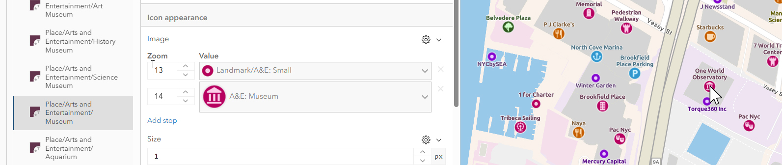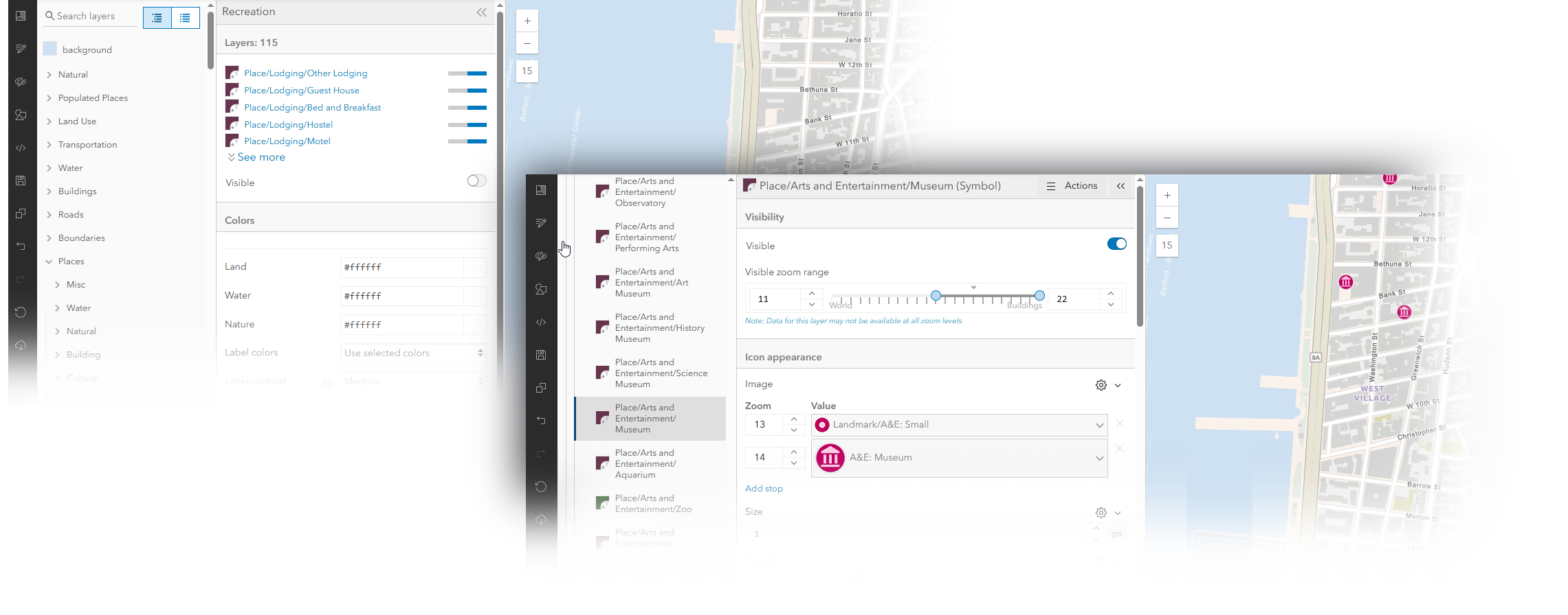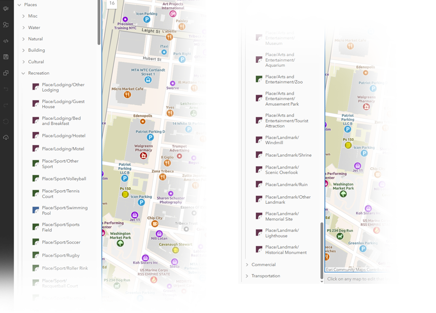 In 2024, Esri introduced new versions of our more popular basemap styles that include ‘Places’ data. ‘Places’ are a dense set of points of interest, available at large scales, sourced from several different providers. There is a lot of information in this data… maybe more than you need! But there are several ways to be selective in how you use it.