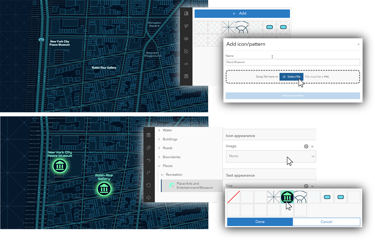 - On your target map, open ‘Edit icons and patterns’, then ‘Add’