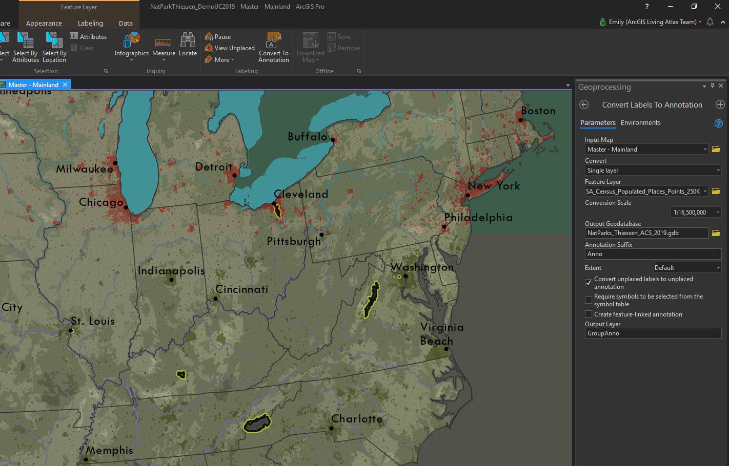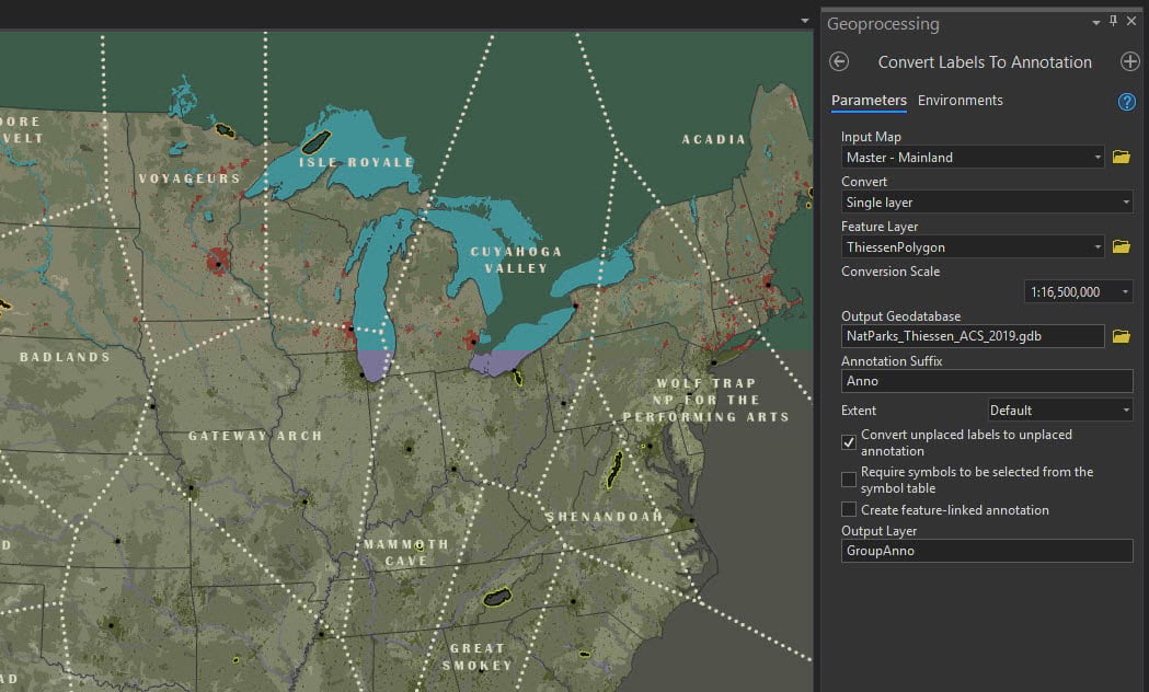 Now let’s make the map labels and turn them into annotation for the National Parks and cities.