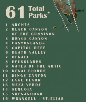 Since publishing there have been two new National Parks – Indiana Dunes and New River Gorge.