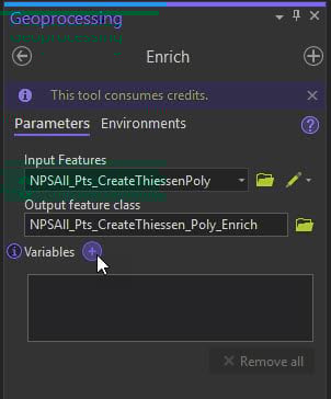 Use the Thiessen polygon layer we created and give the new output feature class a name. Then click on Variables.