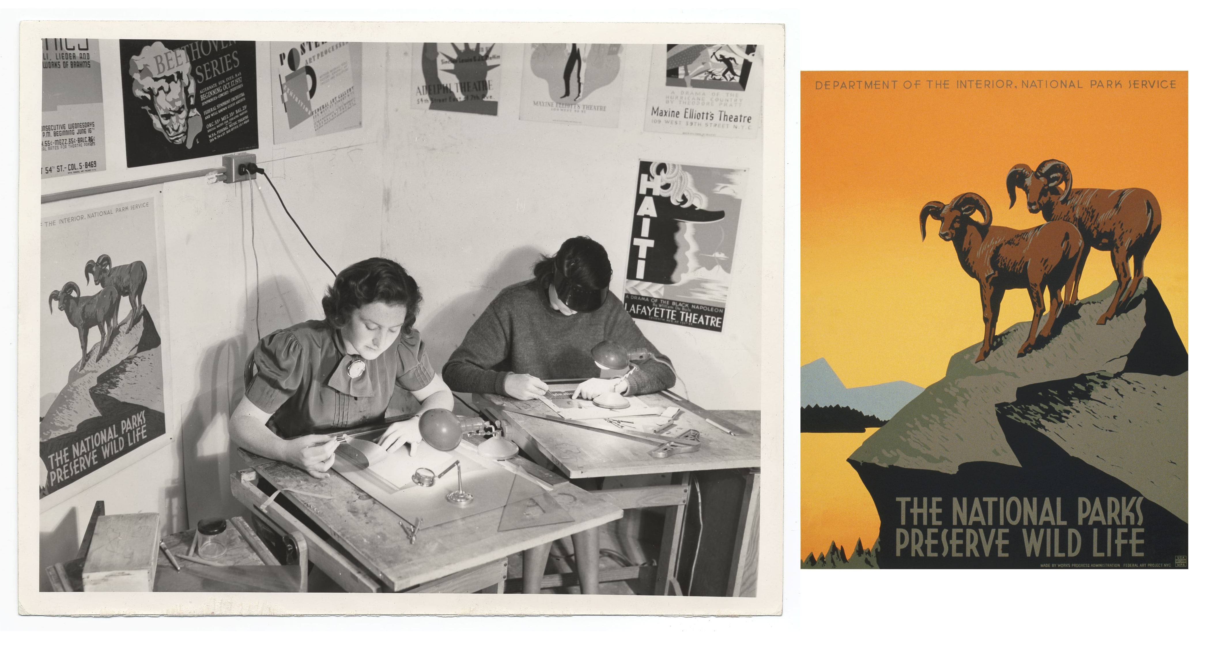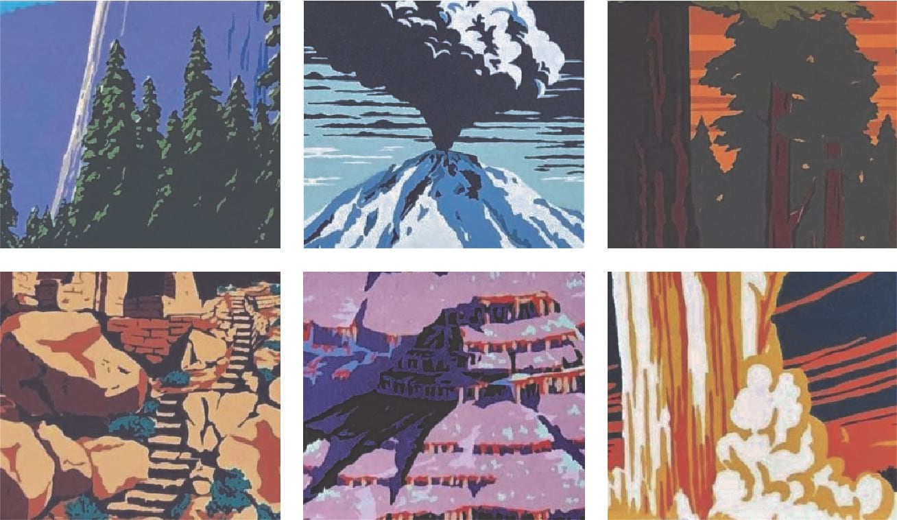From 1938 to 1941 the WPA created a series of posters for the National Parks and these are now classic graphics of some of America’s most beloved geographies. These artists made over 35,000 different types posters to promote safety, health, education, theater, and travel.