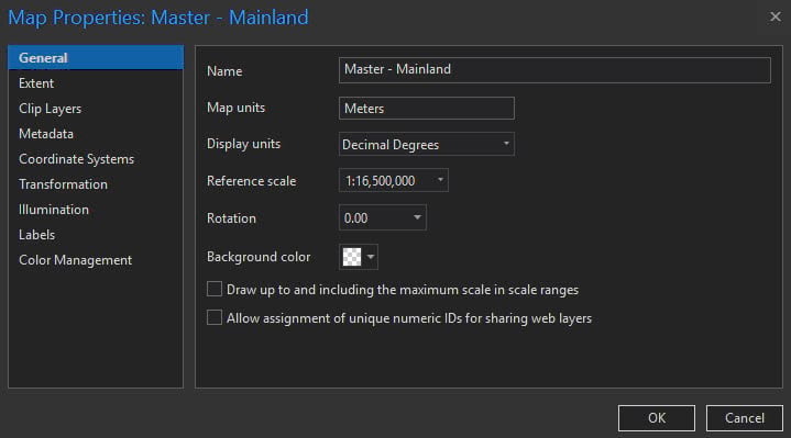 The Map Properties have been adjusted to: