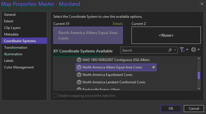 Projection is North America Albers Equal Area Conic