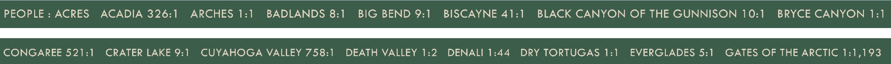 All that’s left is to add the legends, disclaimer as mentioned above, and one last element to make this map really bring it. Let’s calculate the ratio of People:Acres for every National Park!