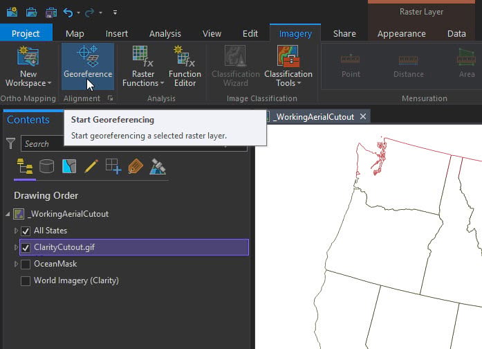 Open the Georeferencing toolbar.