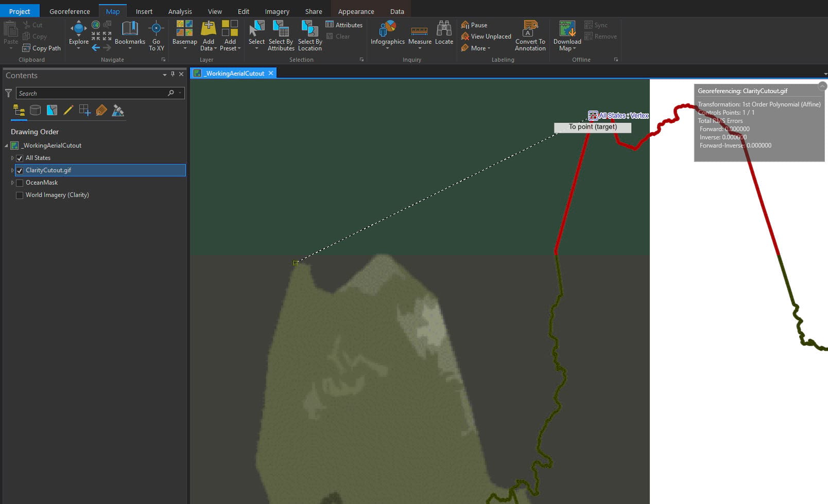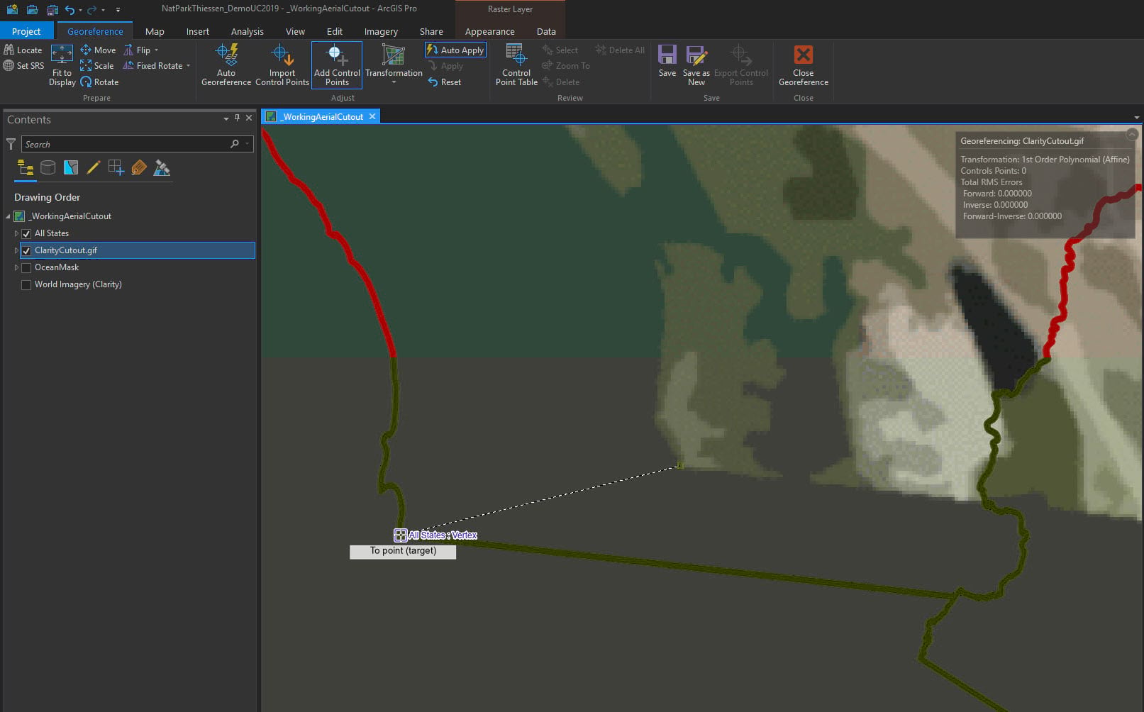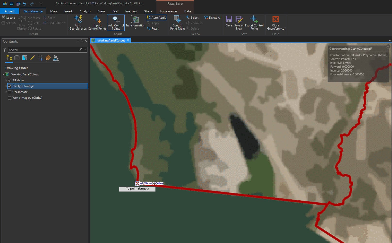 The tool is intuitive and the ribbon changes to reflect georeferencing options. Select Fit to Display.