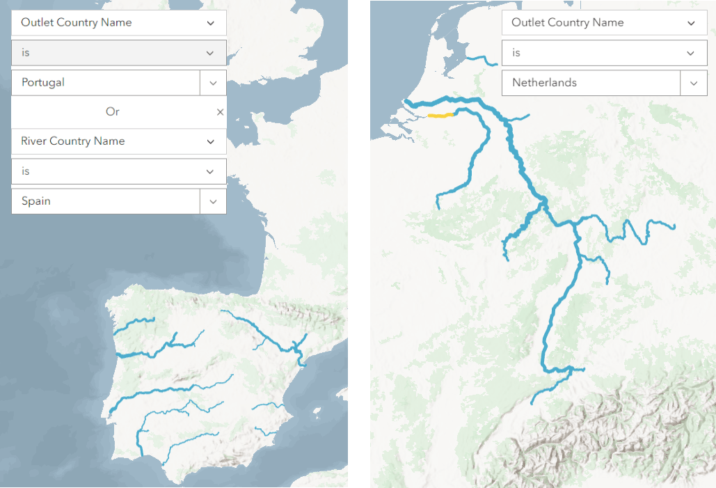 The updated GEOGLOWS 2.0 service includes fields to create custom maps for different geographic regions. The fields such as River Country Name, Outlet Country Name, TDX Hydro Region Number, or Terminal TDX Hydro Link Number can be used to apply a filter and subset the data set.