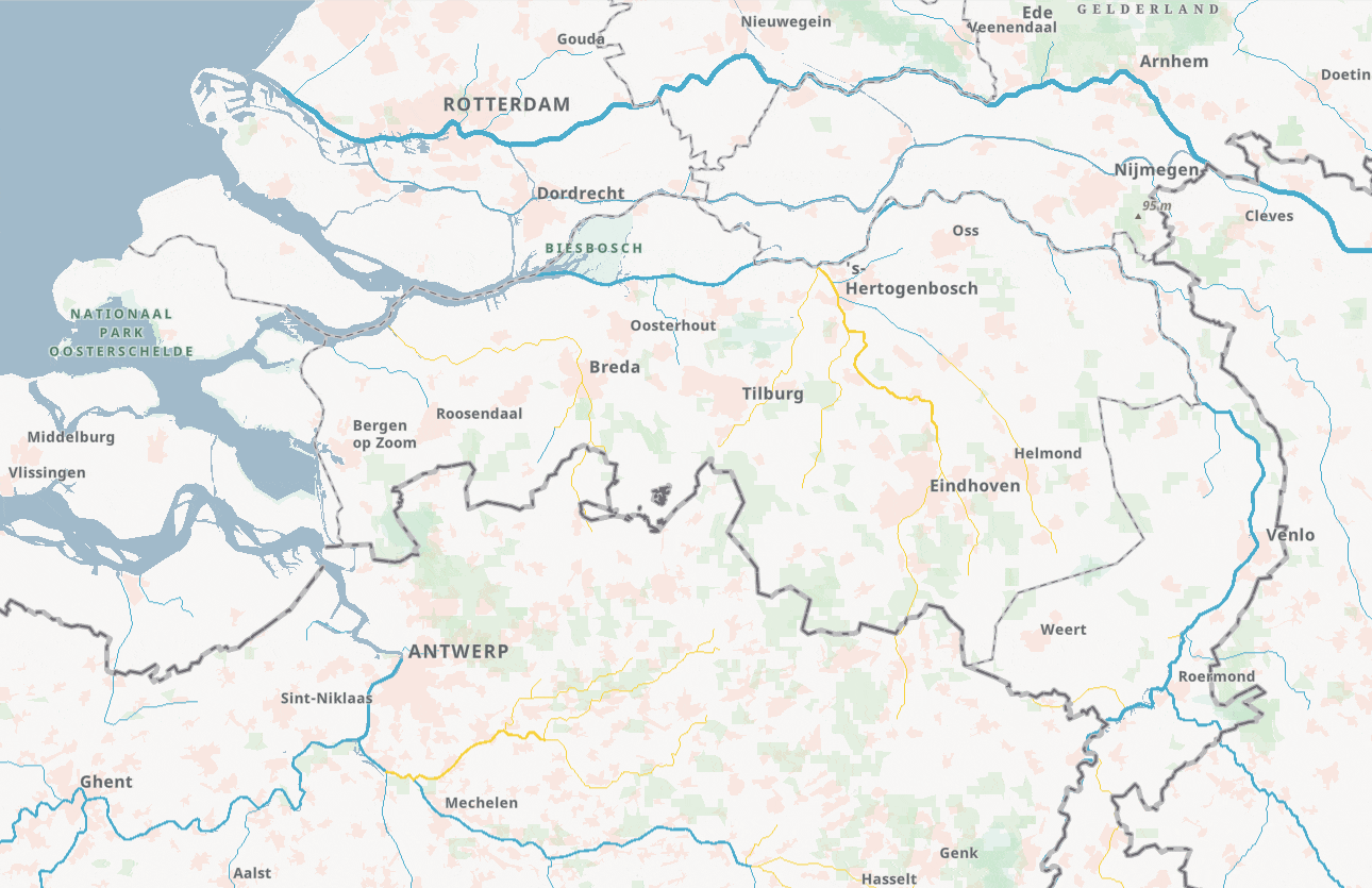 The GEOGLOWS 2.0 service is highly responsive due to the updated publishing workflow used behind the scenes. The GEOGLOWS layer was created using a scale dependent data source query layer, displaying generalized features for small scales and the original features at large scales. The GEOGLOWS layer is scale dependent, showing only the most prominent rivers at small scales and displaying more river features and smaller tributaries at large scales.