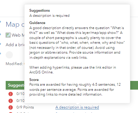 For the most current list of nomination rules, visit this resource. For more insight to applying best practices to your shared items, visit this resource. For an example of a well-documented layer, check out this item from Living Atlas.