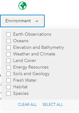 The major categories can help you narrow down the full collection of Living Atlas content into a more focused grouping of content for your needs.