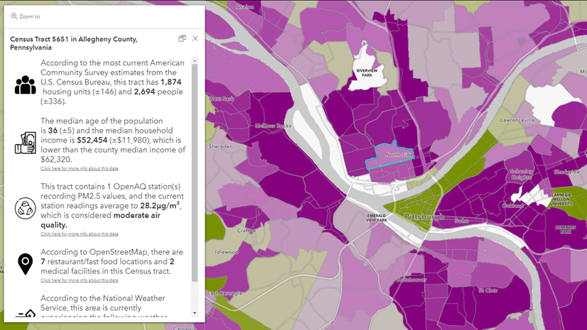 Apps like StoryMaps, Dashboards, and custom apps can be opened and explored to find quick answers to your spatial questions. They can also be used to inspire your own work. Some of the Highlighted Apps even allow you to download the backend code to customize for your needs if you are a developer.