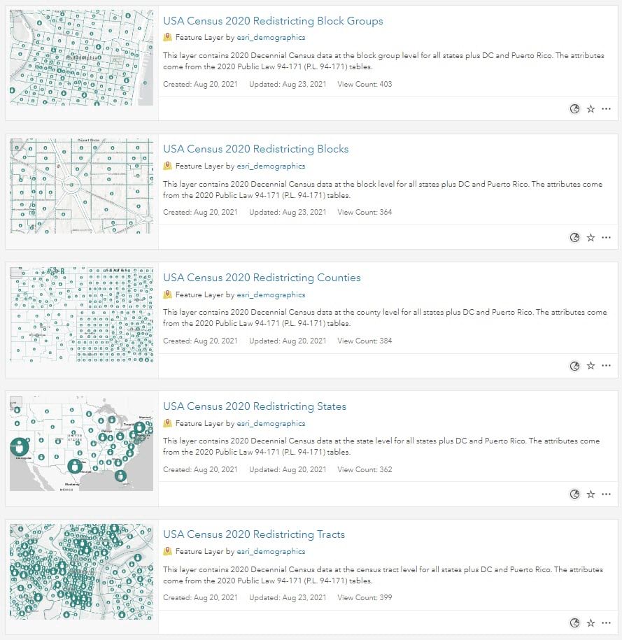 Public Law 94-171 (PL-94-171) requires the U.S. Census Bureau to provide states tabulations of population, which were released on August 12th, 2021 via FTP. This block-level data is now available in ArcGIS Living Atlas of the World for the entire country, and for individual states, District of Columbia and Puerto Rico .