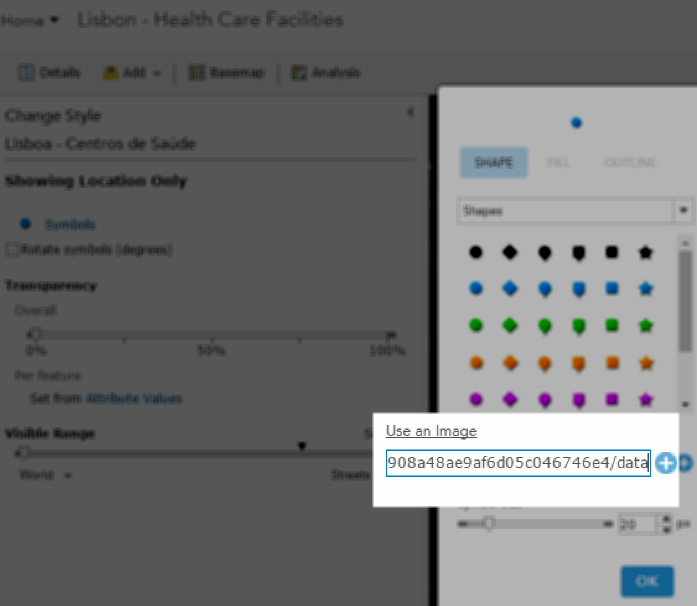 Click Use an Image, enter the URL, and click the blue plus sign. Save your changes to the layer and the map.