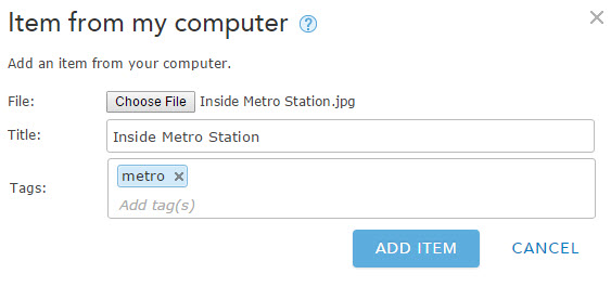 Choose your photo, give it a tag or two, and click Add Item.
