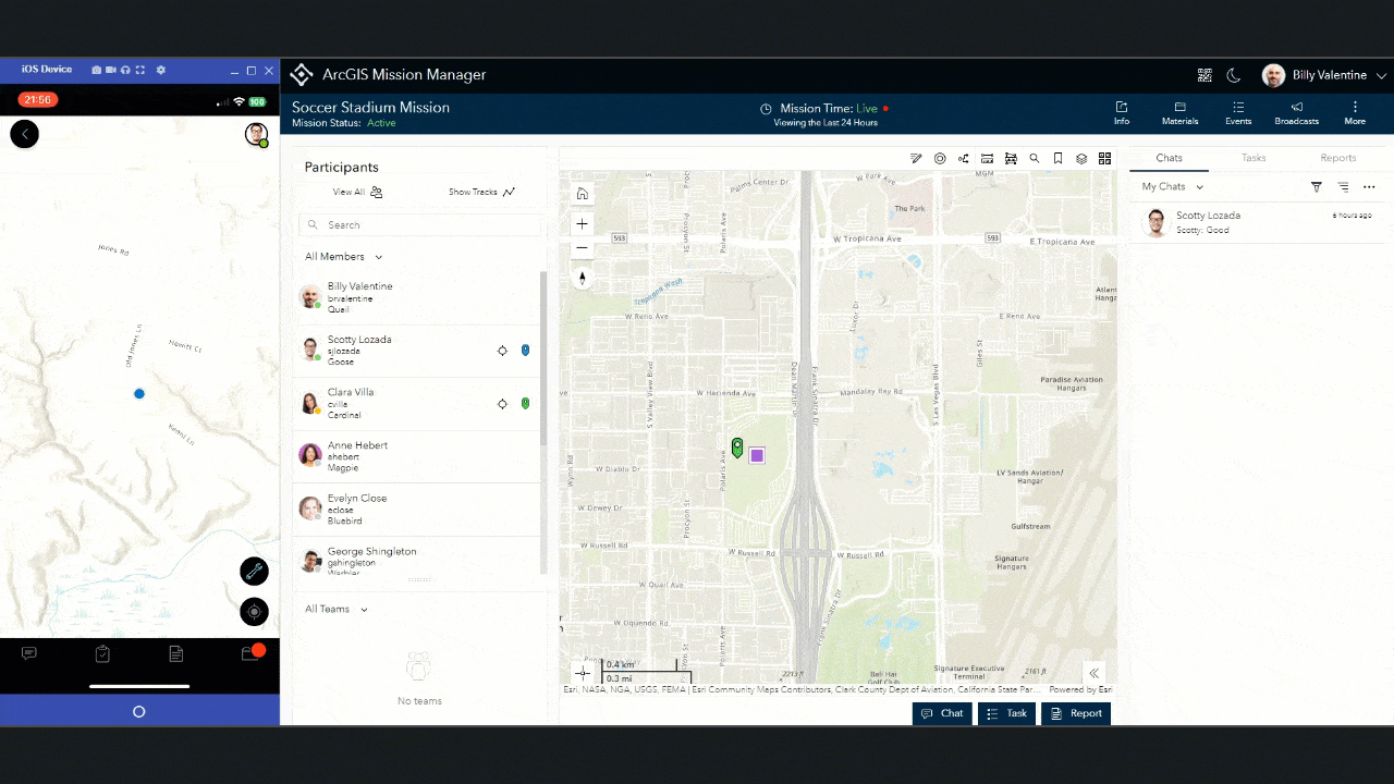 ArcGIS Mission is an Esri product that meets a wide range of organizational needs. From daily operations to large-scale event management, ArcGIS Mission provides a constant flow of information between command entities and field personnel. Through position tracking, chat services, customizable reports, and dispatch and tasking capabilities, every mission member is in sync. Additionally, ArcGIS Mission can leverage all resources and power of the ArcGIS Enterprise to keep all mission members connected and informed.