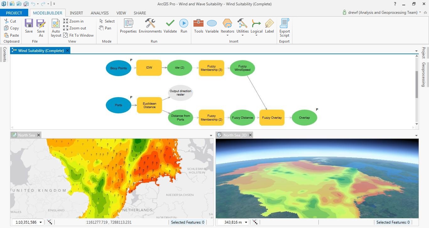 ArcGIS Pro contiene cientos de herramientas de geoprocesamiento, te deja crear modelos con ModelBuilder, y te permite codificar flujos de trabajo con Python. ArcGIS Pro es también una poderosa aplicación raster y de imágenes; utilízala para realizar análisis raster sobre la marcha y trabajar con grandes conjuntos de datos lidar en 3D.