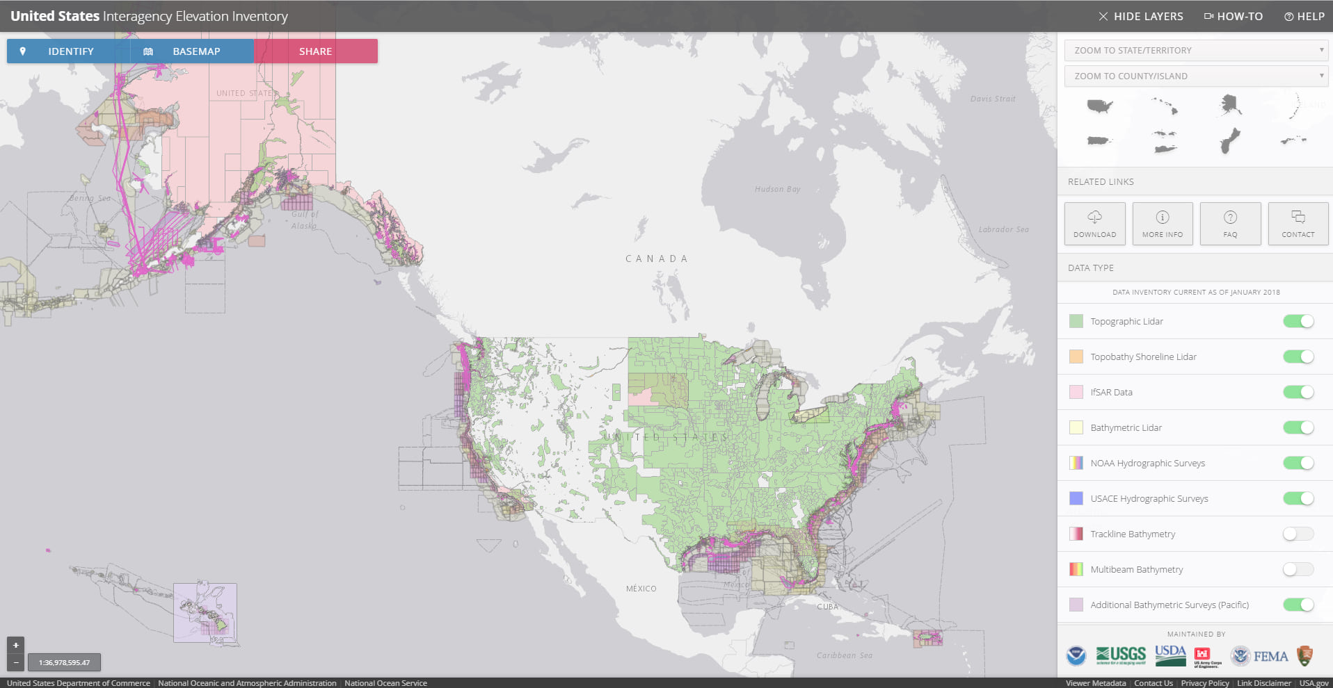 Using the United States interagency elevation inventory site, you will be directed to the National Oceanic and Atmospheric Administration data access viewer.