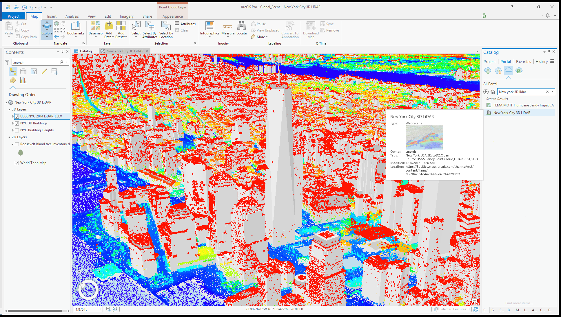 These are just some of the ways in which you can share and publish you very large LiDAR Point Cloud datasets locally and to ArcGIS Online. To review other examples of point cloud scene layers check out the 3D Scene Layer Group on ArcGIS Online.