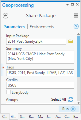 Filling out a Summary description, Tags used to describe and identify the package and credits for the source and providence of the data used.