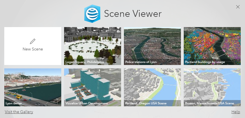The first thing you will notice is the new redesigned welcome screen, which allows you to open your recently used scenes with one click. As you view or save scenes in Scene Viewer, the welcome screen will list the most recent ones, replacing its original gallery of Esri curated 3D scenes.
