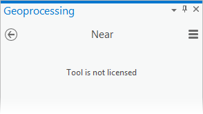 Near tool on the Geoprocessing pane with message that tool is not licensed