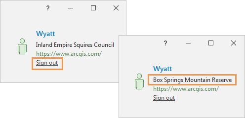 Wyatt signs out of his company’s ArcGIS Online portal and signs in to his trial organization portal.