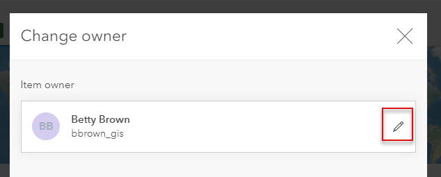 After selecting an item from Content and choosing Change Owner, click the edit pencil next to the current owner’s name to activate the search bar.