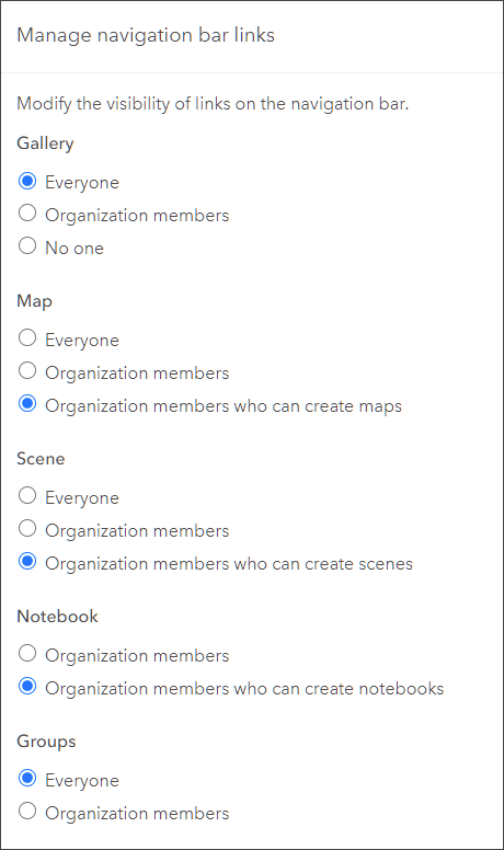By default, the Gallery displays all organization items, though public visitors will only see publicly shared items. Rather than present a random collection of content, you can control what is presented by configuring the Gallery tab to display selected content managed in a group. To configure the Gallery, follow these four steps.