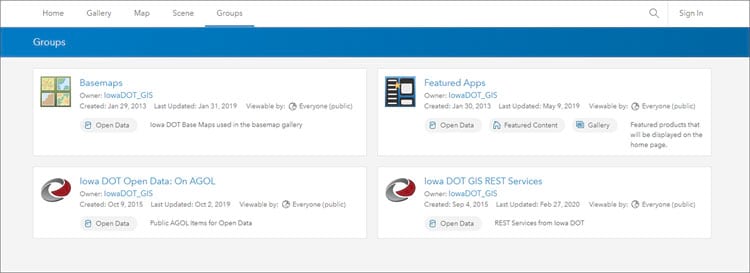 By default, the Gallery displays all organization items, though public visitors will only see publicly shared items. Rather than present a random collection of content, you can control what is presented by configuring the Gallery tab to display selected content managed in a group. To configure the Gallery, follow these four steps.