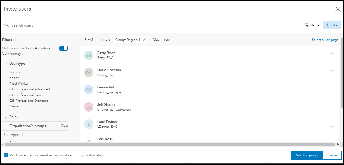 ArcGIS Online organizations are growing! The number of members in each organization and variety and complexity of tasks that need to be accomplished has expanded over the past seven years. In 2014, there were almost 30 organizations with over 500 members. In 2019, there are almost 600 organizations with more than 500 members. Maintaining an organization with a lot of members can be challenging as the organization grows and changes. The June 2019 update of ArcGIS Online includes new functionality to streamline adding members to the organization and finding, and filtering members based on many member properties. Although these enhancements make managing members more approachable for large member organizations, the streamlined workflows will also improve member management workflows for small organizations.