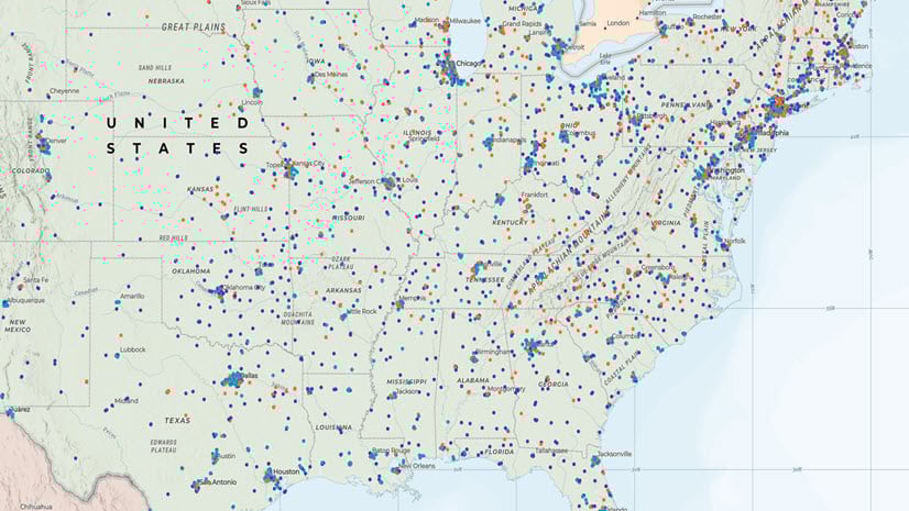 I am working with the US College Scorecard dataset provided by the United States Department of Education, showcasing college admission rates, test scores, cost of education, return on investment, etc., at colleges and universities across different regions. On this map, each point represents one College or University.