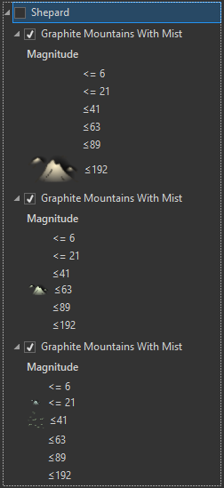 So, you just upload a picture marker corresponding to each range of elevation. Then you play with the symbol spacing to get something that looks reasonably somewhat slightly tangentially like the unknowably brilliant JRRT might have scratched it onto some parchment.