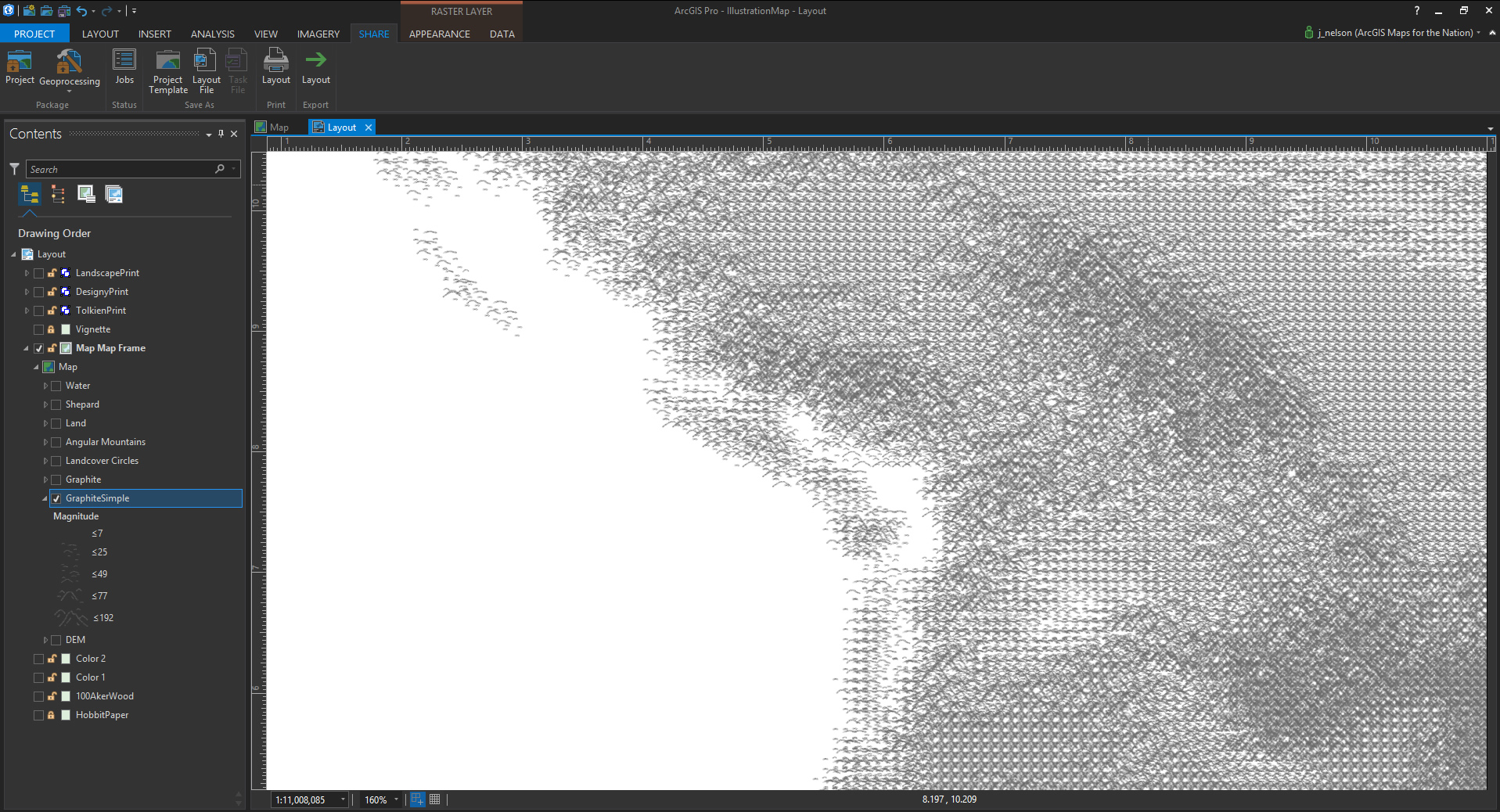 This is part one of a three-part blog extravaganza where I lay out how you might whip up a fantasy-style book-ish illustration-y map insert, in ArcGIS Pro. This technique, which is a total hack (but what isn’t, ultimately), can get you cranking out quill-scratched oak ink on parchment map inserts all in the cozy digital confines of your GIS.