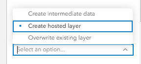 To preserve intermediate data, such as the final model results, you can choose the “Create hosted layer” option in the tool dialog. This option enables you to save the output as a hosted feature layer within your organization, so you can access and share it after the model has completed running.