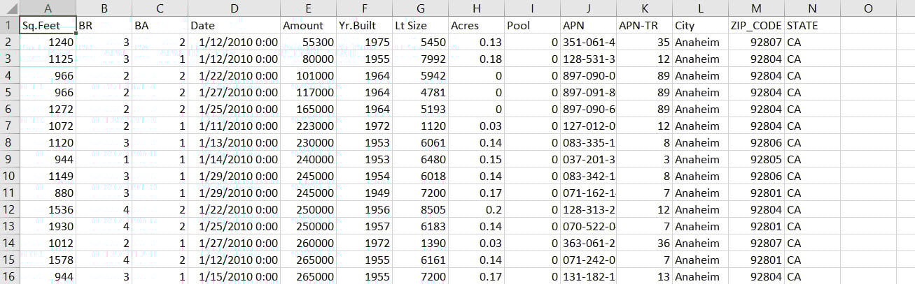 Let’s walk through an example. Say you have a CSV file containing a list of houses sold in a city (Figure 1).