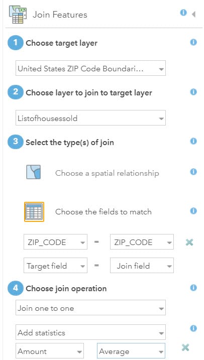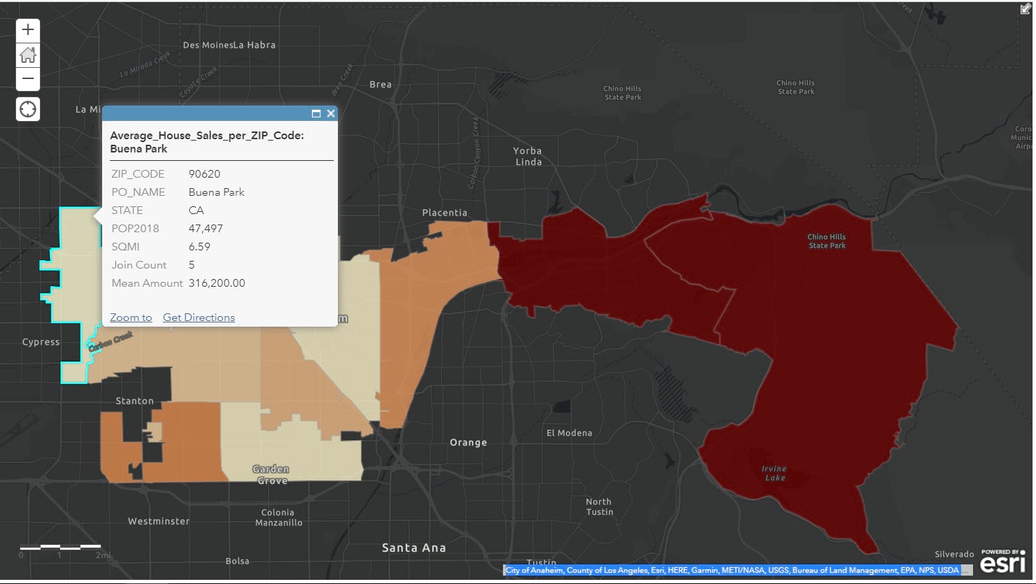 Our goal is to summarize the total number of houses sold for each zip code, and create a choropleth map in ArcGIS Online, which shows the average sales price per zip code. We can do this via the Join Features tool and by accessing the Living Atlas Analysis layers.