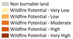 Areas with higher wildfire potential values represent fuels with a higher likelihood of experiencing high-intensity fire with torching, crowning, and other forms of extreme fire behavior. - Fire Modeling Institute