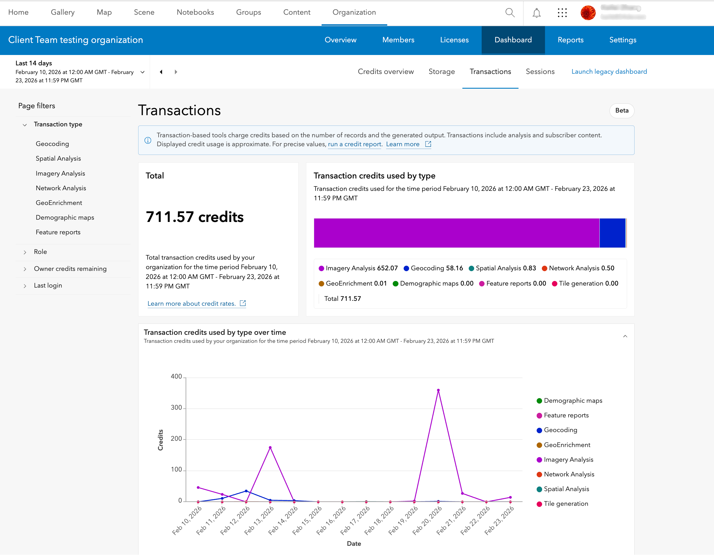 Transaction-based tools—such as geocoding, GeoEnrichment, image analysis, and spatial analysis tools—are charged based on the number of records and the generated output. For more information about credit consumption when using analysis tools, check out Understand credits for spatial analysis.