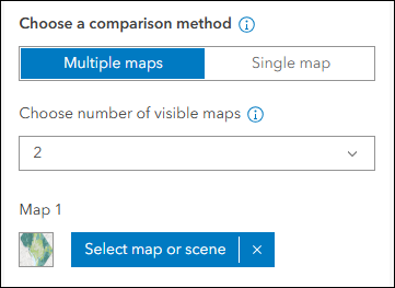 Multiple maps mode gives you that classic comparison style app that you might have been accustomed to with ArcGIS Configurable Apps in the past. Comparing different variables for a given location in a single app layout is a great way to visualize differences, similarities, and trends in your data. We recommend to move forward using this new Instant Apps template as the replacement solution to any apps you’ve created using older and retired comparison style templates from ArcGIS Configurable Apps. The new Compare also includes an additional comparison mode, Single map, which is detailed below.